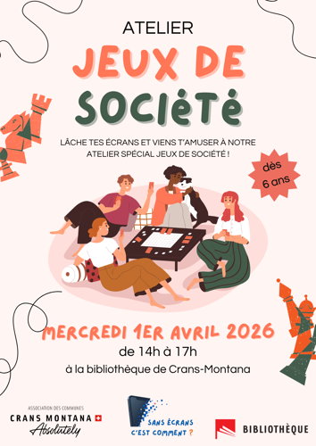 Pour la semaine sans écrans, la bibliothèque vous propose le mercredi 1er avril de 14h à 17h, un atelier pour découvrir de nouveaux jeux de société ou pour vous lancer dans des parties de jeux classiques que tout le monde connaît. Un moment convivial pour jouer et rire ensemble.