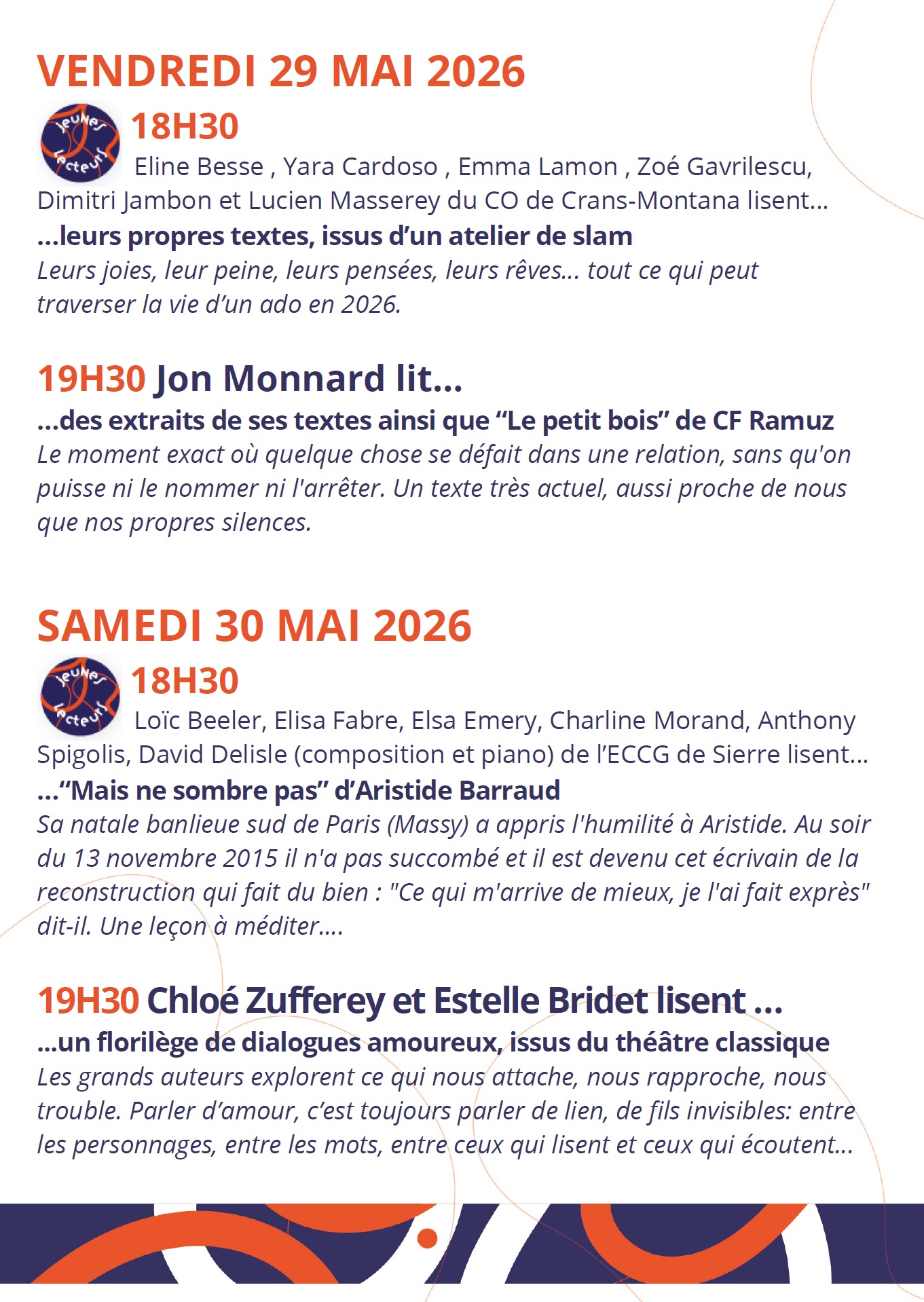 Le festival revient en mai 2026 et s’associe à la Journée suisse de la lecture à voix haute le 27 mai 2026.