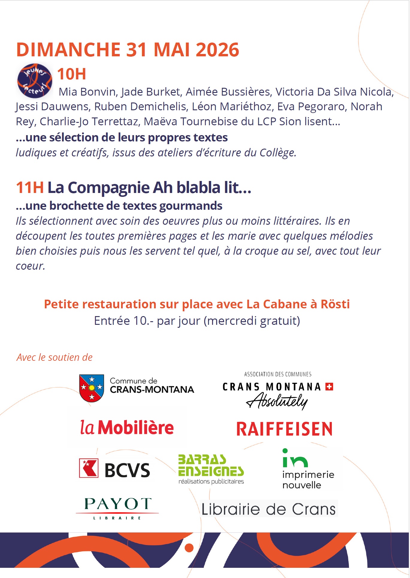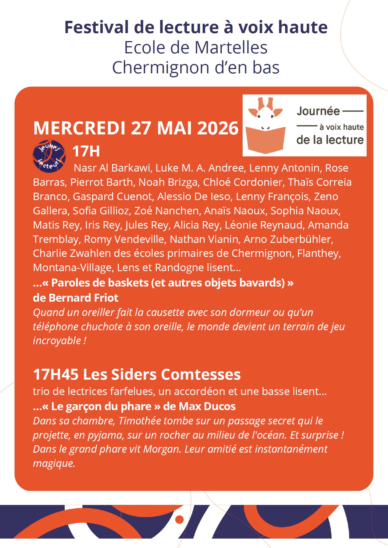 Le festival revient en mai 2026 et s’associe à la Journée suisse de la lecture à voix haute le 27 mai 2026.