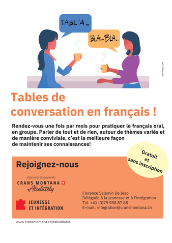 Un pilier important de l’intégration est la langue du lieu de vie. C’est pourquoi l’Association des Communes de Crans-Montana propose des cours de français de différents niveaux, accessible à moindre coût grâce au subventionnement de la confédération, du canton et des communes.