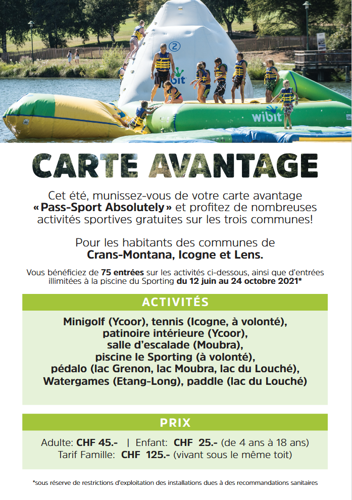 Le Pass-Sport Absolutely à disposition des habitants des communes de Crans-Montana, Icogne et Lens